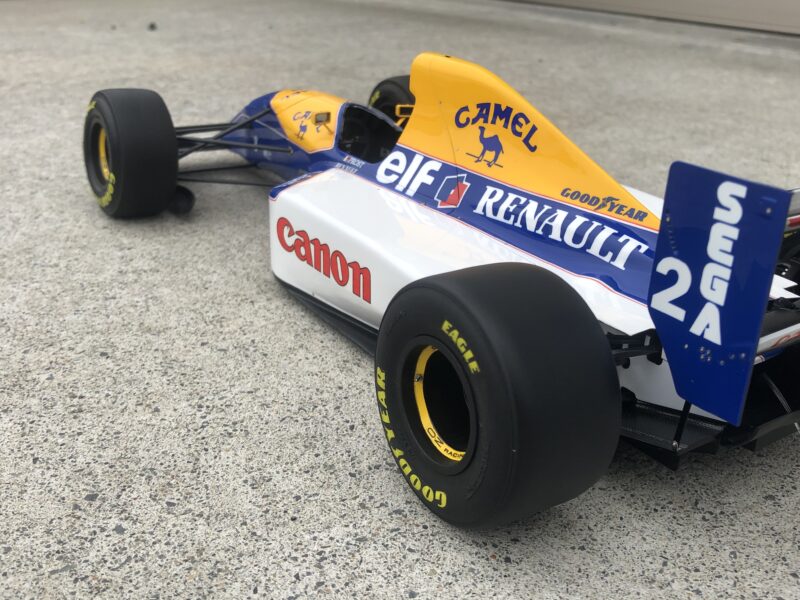 田宮のビッグスケールキットを改造して、1993年のA.プロスト車を再現しました。 ノーズや翼端版、モノコック部やリアカウル・リアウイングなどを加工。 タイヤもキット付属品のリア用をナロー化して装着。 フロントのトレッド幅も詰めてより93年らしい雰囲気に仕上げました。 プロポーションモデル。