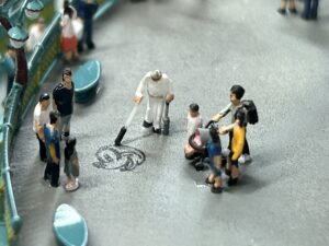 【TDS】キャストたちの再現 2025年09月18日 ディズニーのジオラマ 実際のミステリアスアイランドではあまり見られないかもですが、再現してみました(^^)/ 水で描くミッキーマウス…かわいいですね♪
